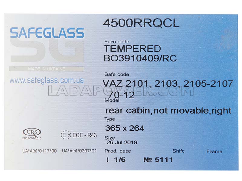 Rear Right Door Corner Window Glass For Lada 2101, 2103, 2105, 2106, 2107.