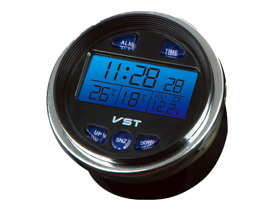 When connected to the power supply of your car, the indicator works in full. When working on a built-in power source (built-in and easily replaceable 2 batteries), the clock works in an economical mode and shows only the time.